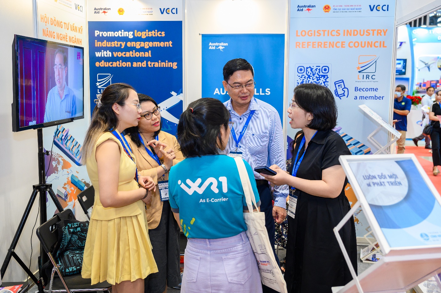 At the exhibition, Vietnam Chamber of Commerce and Industry – HCMC Branch (VCCI-HCM) in collaboration with Aus4skills and the attendance of LIRC school members, LIRC booth has received over 200 visits from many guests (including business representatives, parents, students, and lecturers) to gain an understanding of LIRC’s overview and its majoring activities; gathering information on logistics workforce via detailed forecast reports built on skills forecasts and occupational standards developed for some job positions, and admission of VET institutions.
